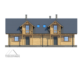 Dom jednorodzinny, dwulokalowy. Jeden z segmentów częściowo podpiwniczony. Każdy lokal posiada osobne wejście, salon z aneksem kuchennym, łazienkę i garderobę na parterze oraz dwie sypialnie i łazienkę na poddaszu.