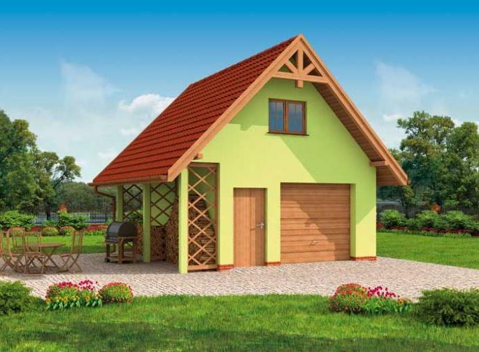 Garaż jednostanowiskowy z pomieszczeniem gospodarczym i z poddaszem użytkowym.