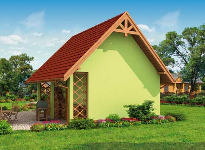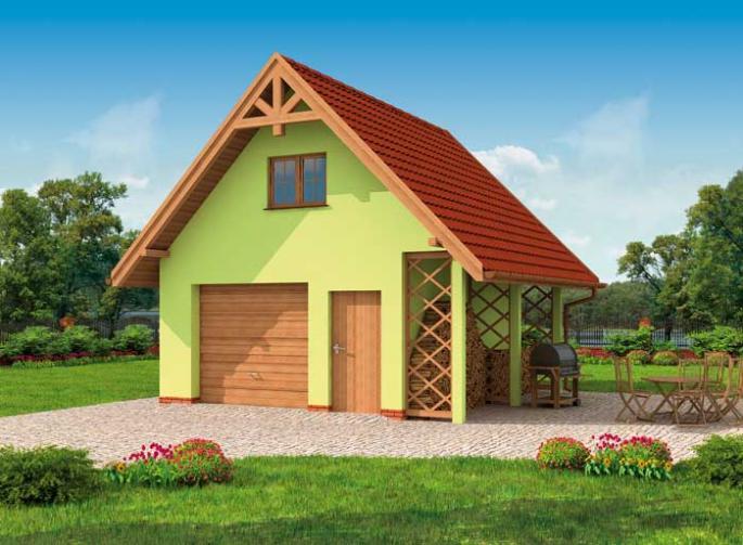 Garaż jednostanowiskowy z pomieszczeniem gospodarczym i z poddaszem użytkowym.