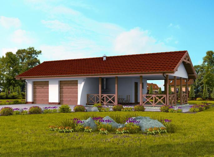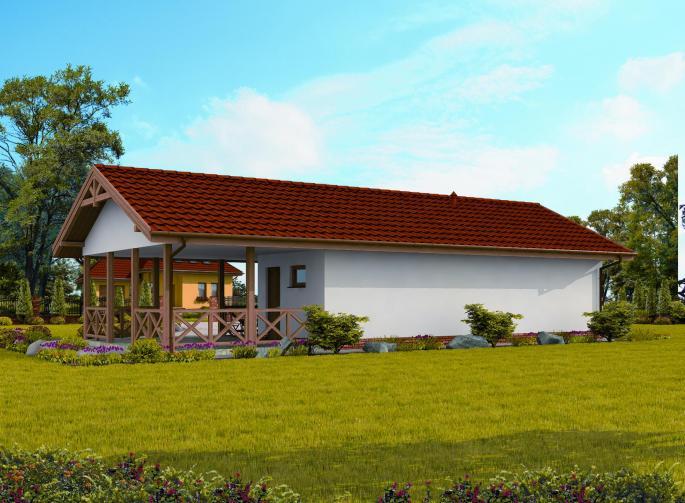 Garaż parterowy dwustanowiskowy z zadaszonym tarasem. Bramy garażowe o wymiarach otworu w murze 2400x2400. PROJEKT DOSTĘPNY RÓWNIEŻ W WERSJI Z SPADEM DACHU 25 STOPNI. Projekt składa się z części architektonicznej, konstrukcyjnej i wewnętrznej instalacji elektrycznej. W projekcie załączone są podstawowe zestawienie stali, drewna i stolarki okienno-drzwiowej. Do projektu dołączamy bezpłatną zgodę na wprowadzenie zmian, oświadczenie projektantów o wykonaniu projektu zgodnie z obowiązującymi normami i przepisami oraz kserokopie uprawnień projektantów wraz z aktualnym wpisem do izby. W przypadku zamówienia projektu w technologii lekkiej, drewnianej konstrukcji szkieletowej, powierzchnia użytkowa budynku jest o około 7% większa.