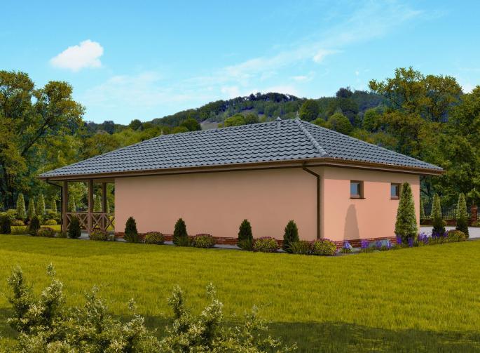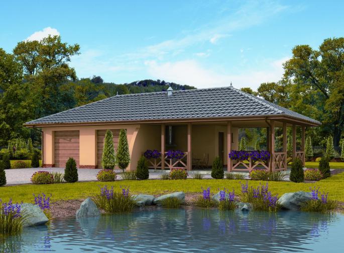 Garaż dwustanowiskowy z pomieszczeniem gospodarczym i altaną. Projekt składa się z części architektonicznej, konstrukcyjnej i wewnętrznej instalacji elektrycznej. W projekcie załączone są podstawowe zestawienie stali, drewna i stolarki okienno-drzwiowej. Do projektu dołączamy bezpłatną zgodę na wprowadzenie zmian, oświadczenie projektantów o wykonaniu projektu zgodnie z obowiązującymi normami i przepisami oraz kserokopie uprawnień projektantów wraz z aktualnym wpisem do izby. W przypadku zamówienia projektu w technologii lekkiej, drewnianej konstrukcji szkieletowej, powierzchnia użytkowa budynku jest o około 7% większa.