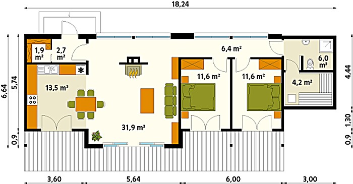 | pow. zabudowy | 105,50m2 | wys. pomieszczeń | b/d | wymiary budynku | 18,24m x 6,64m |