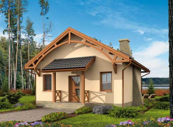 \\\"La Lora\\\" Małe jest piękne chciałoby się powiedzieć na widok tego zgrabnego domku. Idealne proporcje, niewielkie rozmiary, przyjazna sylwetka La Lora z pewnością budzi zaufanie. Znakomicie spisuje w roli całorocznego gniazdka dla niewielkiej rodziny, ale równie dobrze może być traktowany jako letniskowa \\\"odskocznia\\\". Dom jest wyjątkowy także ze względu na starannie dobrana kolorystykę ciepły beż elewacji, równie ciepły brąz drewnianych wykończeń oraz miękkie szarości dachówki, kamiennych podmurówek, schodków i efektownego komina tworzą oryginalną kompozycję estetyczną. Małe jest nie tylko piękne, a w dodatku i przytulne. Wnętrze domu kryje wszystko, co potrzebne, by mieszkać komfortowo i wygodnie. Przestronny pokój dzienny, z którego przez niewielki taras można wyjść prosto do ogrodu, obiecuje spokojny relaks, a połączona z kuchnią jadalnia to miejsce, które ma szanse stać się sercem rodzinnego ogniska, skupiając domowników przy wspólnych posiłkach. Oprócz sypialni i łazienki znalazło się również miejsce na niewielką garderobę. Projekt składa się z części architektonicznej, konstrukcyjnej, wewnętrznych instalacji wod.-kan, c. o. i elektrycznej. W projekcie załączone są podstawowe zestawienie stali, drewna i stolarki okienno-drzwiowej. Do projektu dołączamy bezpłatną zgodę na wprowadzenie zmian, oświadczenie projektantów o wykonaniu projektu zgodnie z obowiązującymi normami i przepisami oraz kserokopie uprawnień projektantów wraz z aktualnym wpisem do izby. W przypadku zamówienia projektu w technologii lekkiej, drewnianej konstrukcji szkieletowej, powierzchnia użytkowa budynku jest o około 7% większa.