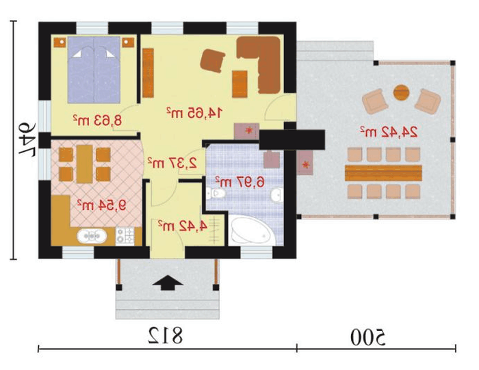 Projekt dostępny również jako CAŁOROCZNY!!! Cena projektu w wersji całorocznej- 1800zł. Ze względu na docieplenie budynku do każdego wymiaru widocznego na rzucie należy dodać 20cm.