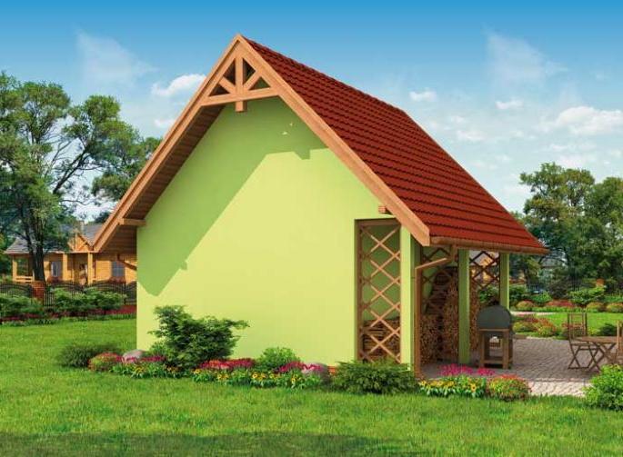 Garaż jednostanowiskowy z pomieszczeniem gospodarczym i z poddaszem użytkowym.