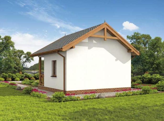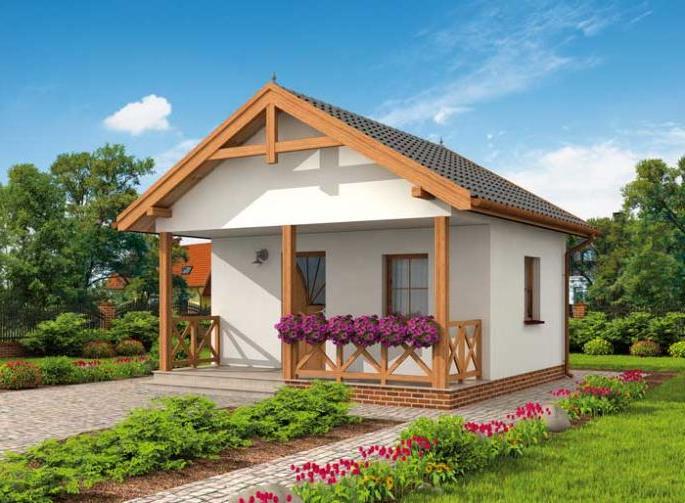 Haga - mały domek letniskowy Zdecydują się na niego wszyscy, którzy nie mają wielkich wymagań, chcą jedynie spokoju i zasłużonego wypoczynku w zaciszu. Dostępność projektu w wersji z obiciem drewnianym sprawia, że z pewnością świetnie będzie się prezentował poza miastem. Drewniana weranda oraz ciepły kolor ścian są idealnym połączeniem, dachówka, pokrywająca dwuspadowy dopełnia całości. Uwagę zwracają wieńczące go spiczaste wykończenia oraz weranda zachęcająca gości do wejścia. Przyjaźnie i z rozwagą zaprojektowane wnętrze, na które składają się: wiatrołap, jadalnia, pokój dzienny wyposażony w miejsce na kominek oraz łazienka dopełniająca całości. Haga to kompletny budynek, w którym znajdziemy wszystko, co do komfortowego wypoczynku konieczne. Dostępność projektu w wersji standardowej i w obiciu drewnianym ścian sprawia, że Haga jest warta rozwagi Inwestora.
