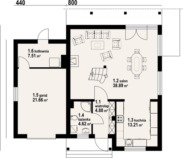 | 1.2 | salon | 38,89 m2 |