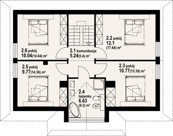 Poddasze: 54,55 m2(76,63 m2)