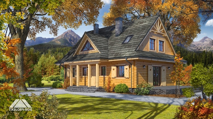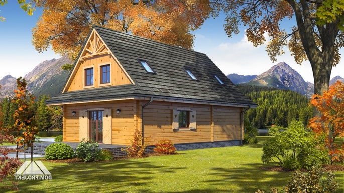 Funkcjonalny dom o ciekawej architekturze. Podstawowym pomieszczeniem parteru jest przestronny salon połączony z aneksem kuchennym. Ponadto na parterze znajdują się pomieszczenia: pokój-biblioteka, pralnia, kotłownia i spiżarka. Kominek w salonie. Na poddaszu cztery wygodne sypialnie i łazienka.