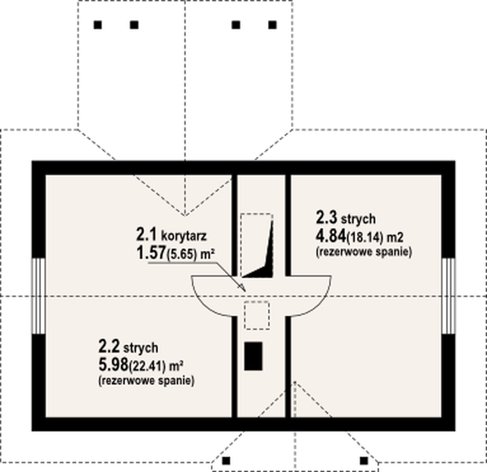 | pow. użytkowa | 44,67m2 | kubatura | 229,37m3 | kąt dachu | 38° |