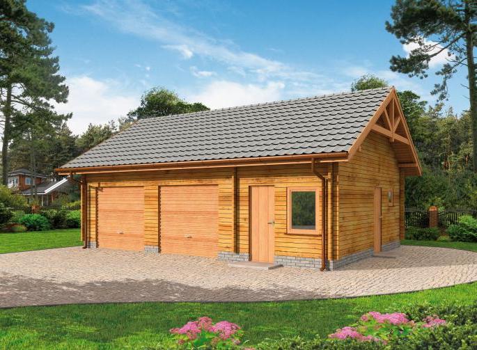Projekt z bala drewnianego garażu dwustanowiskowego z 2 pom. gospodarczymi.