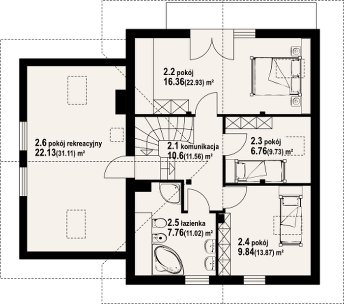 | 2.6 | pokój rekreacyjny | 22,13 m2 |