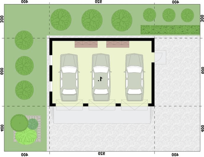Budynek garażowy trzystanowiskowy, wolnostojący, niepodpiwniczony.