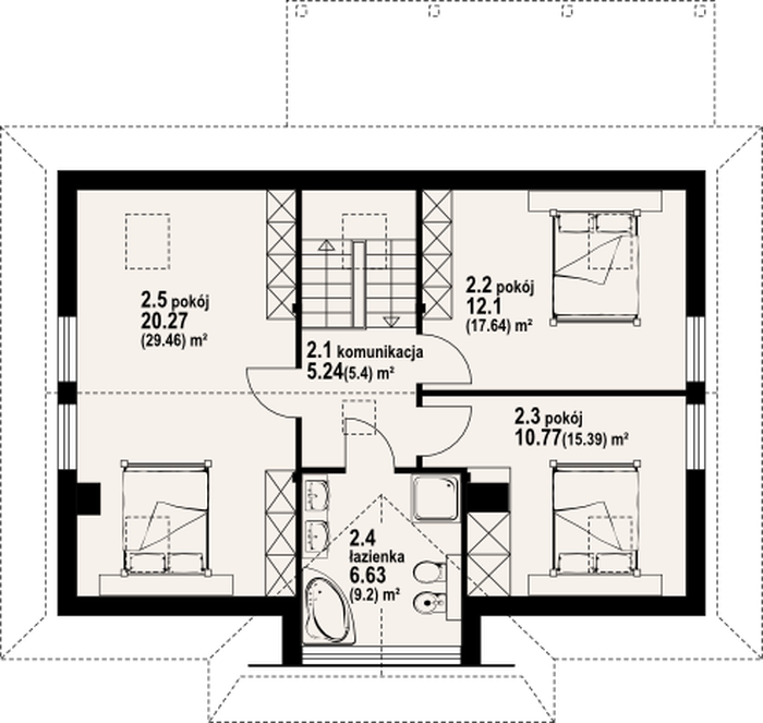 Poddasze: 55,01 m2(77,09 m2)