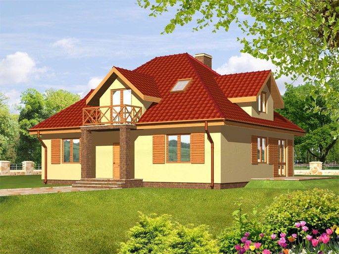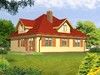 Dom jednorodzinny parterowy z użytkowym poddaszem przeznaczony dla 4 – 5 osobowej rodziny. Zostały wydzielone strefy. na parterze dzienna to pokój dzienny z kominkiem. kuchnia ze spiżarką. wc i hol i nocna to dwie sypialnie z łazienką na parterze natomiast druga strefa nocna na poddaszu z dwoma sypialniami i łazienka z garderobami. Dach o kącie nachylenia 400 kryty blacho dachówką