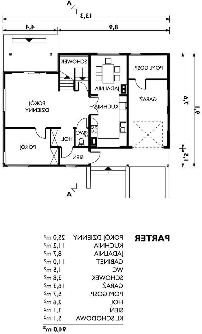 | pow. zabudowy | 105,10m2 | wys. pomieszczeń | b/d | wymiary budynku | 13,30m x 9,10m |