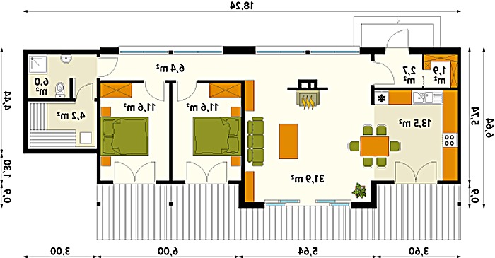 | pow. zabudowy | 105,50m2 | wys. pomieszczeń | b/d | wymiary budynku | 18,24m x 6,64m |