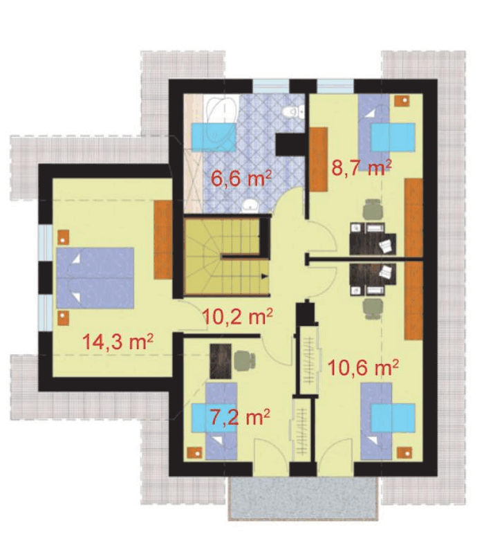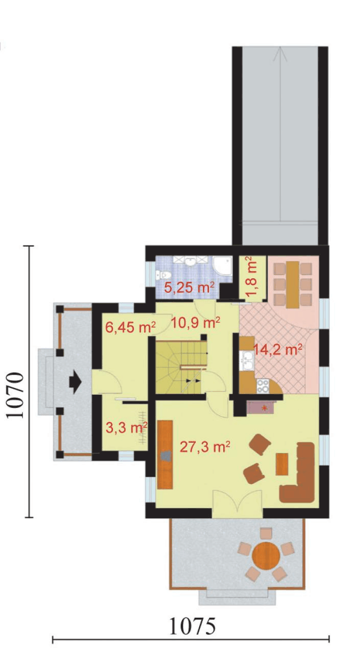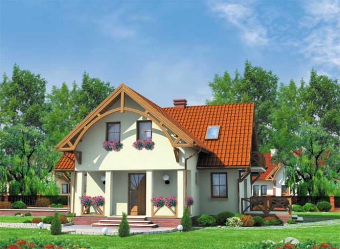 \"Palermo\" To dom okazały, elegancki wyróżniający się doskonałymi proporcjami i ładną bryłą, której uroku dodaje wysoki, spadzisty dach. Efektowny front budynku to zasługa nadwieszonej części poddasza, wspartej na czterech prostych filarach dzięki temu powstała zgrabna, ozdobiona drewnianymi balustradami werandka. Boczną elewację ogrodową uatrakcyjnia spory taras i niewielki balkon. Dom jest podpiwniczony (w podziemiu mieści się garaż i kotłownia). Największym pomieszczeniem na parterze jest pokój dzienny, z którego wychodzi się na taras, który od wiosny do jesieni może być traktowany jak przedłużenie salonu idealne miejsce na popołudniowe party . Funkcjonalnie zaprojektowana kuchnia ma jasny aneksem jadalny, a także co istotne niewielką spiżarnię. Poza łazienką na parterze jest jeszcze garderoba. Obszerne poddasze zapewni odrobinę prywatności każdemu domowników: są tu trzy pokoje, sypialnia oraz łazienka. Wystarczy rzucić okiem na plan, by stwierdzić, że Palermo to dom nie tylko efektowny i wygodny, ale i przytulny. Projekt składa się z części architektonicznej, konstrukcyjnej, wewnętrznych instalacji wod.-kan, c. o. i elektrycznej. W projekcie załączone są podstawowe zestawienie stali, drewna i stolarki okienno-drzwiowej. Do projektu dołączamy bezpłatną zgodę na wprowadzenie zmian, oświadczenie projektantów o wykonaniu projektu zgodnie z obowiązującymi normami i przepisami oraz kserokopie uprawnień projektantów wraz z aktualnym wpisem do izby. W przypadku zamówienia projektu w technologii lekkiej, drewnianej konstrukcji szkieletowej, powierzchnia użytkowa budynku jest o około 7% większa.