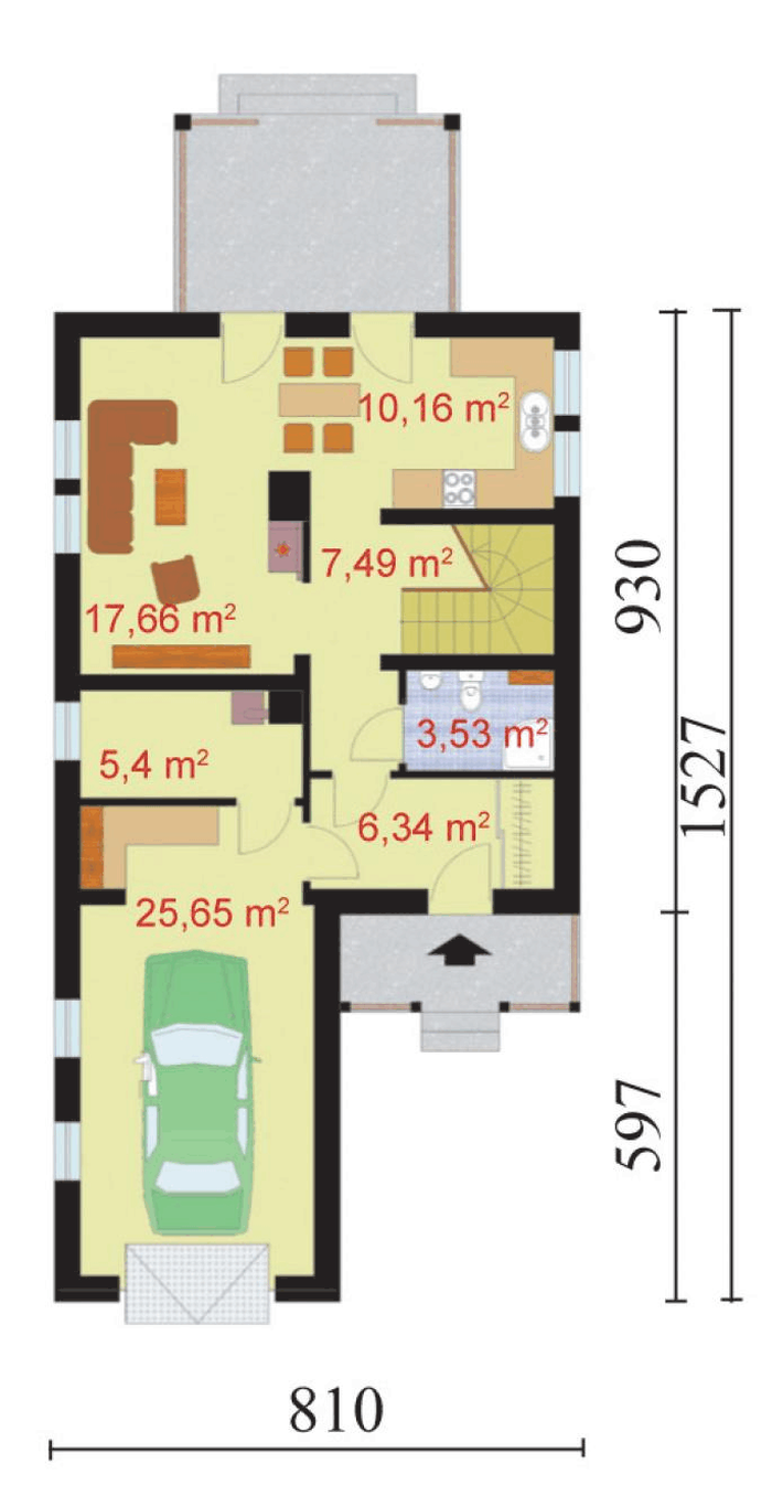 | pow. zabudowy | 101,60m2 | wys. pomieszczeń | b/d | wymiary budynku | 8,10m x 15,27m |