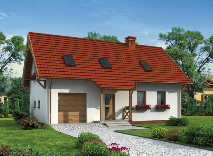 \"Lamia\" Projekt domku jednorodzinnego Lamia zachwyca swą prostotą i elegancją. Został zaprojektowany tak, by stanowić komfortowe rozwiązanie nawet dla pięcioosobowej rodziny. Wejście do domku zostało umieszczone pod niepozornym daszkiem, który stanowi przedłużenie dachu. Dwa okna wychodzące na południe, dodają elewacji frontowej wiele uroku. Z lewej strony przodu domu przewidziano jednostanowiskowy garaż. Na uwagę zasługuje fakt, iż w całym projekcie nacisk został położony na funkcjonalność całej konstrukcji opartej na prostej bryle. Wiatrołap, do którego wchodzimy po przekroczeniu progu domu, możemy zaopatrzyć w praktyczną garderobę. Stąd, kierując się na lewo, możemy przejść do jednostanowiskowego garażu, gdzie przewidziano miejsce na kotłownię, posiadającą odrębne wyjście na podwórze. Z wiatrołapu można także przejść do komunikacji spajającej pozostałe pomieszczenia parteru. Od razu po lewej stronie, tuż obok klatki schodowej przewidziano miejsce na niewielką łazienkę. Do ściany południowej domu przylega niewielki pokoik, który możemy urządzić zgodnie z potrzebami domowników (np. jako pokój telewizyjny, gabinet, czy sypialnię). Pozostałe trzy pomieszczenia parteru, mimo swej odrębności, stanowią wspaniały zespół, w którym znalazło się miejsce na kuchnię z aneksem jadalnym oraz na obszerny pokój dzienny. Możemy stąd udać się na przestronny, cichy taras, umieszczony z tyłu domu. Poddasze domu natomiast zajmuje ogromna łazienka z miejscem na wannę oraz cztery pokoje. Pierwszy z nich, sąsiadujący z łazienką, jest oświetlany przez dwa okna – tradycyjne i połaciowe. Drugi – niewielki – posiada tylko okno połaciowe. Pozostałe dwa pokoje, oprócz okien połaciowych, mają także wyjście na balkon umieszczony od strony wschodniej domu. Sypialnia, przylegająca do ścian północnej i wschodniej, została dodatkowo wyposażona w garderobę. W projekcie Lamia wykorzystano zatem wiele ciekawych rozwiązań. Jest komfortowym, jednorodzinnym domem. Czyż ten projekt nie jest wart uwagi? Projekt składa się z części architektonicznej, konstrukcyjnej, wewnętrznych instalacji wod.-kan, c. o. , gaz. i elektrycznej. W projekcie załączone są podstawowe zestawienie stali, drewna i stolarki okienno-drzwiowej. Do projektu dołączamy bezpłatną zgodę na wprowadzenie zmian, oświadczenie projektantów o wykonaniu projektu zgodnie z obowiązującymi normami i przepisami oraz kserokopie uprawnień projektantów wraz z aktualnym wpisem do izby. W przypadku zamówienia projektu w technologii lekkiej, drewnianej konstrukcji szkieletowej, powierzchnia użytkowa budynku jest o około 7% większa.
