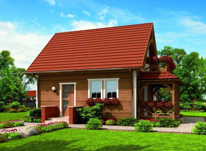 Orlean 2 - projekt domu letniskowego Wszystkim tym, którzy szukają czegoś oryginalnego, proponujemy zapoznanie się z projektem domku letniskowego Orlean 2. Za jego niepowtarzalny styl odpowiedzialne jest poddasze bez okien połaciowych oraz weranda z ślicznym balkonem stanowiącym jej zadaszenie.