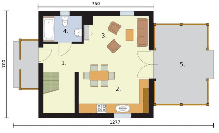 Orlean 3 to najdoskonalszy projekt z serii Orlean. Za jego niepowtarzalny styl odpowiedzialne są przewidywanie praktycznych zastosowań projektu oraz jego dopracowanie w każdym szczególe. Uwagę zwraca poddasze z dwoma oknami wychodzącymi na zachód, pod nimi znajduje się gustowny, drewniany ganek, nadający wejściu estetycznego charakteru. Dach z obu stron spinają eleganckie gotowe jętki ozdobne, do kupienia w całości. Weranda z ślicznym balkonem stanowiącym jej zadaszenie znajduje się po przeciwnej stronie domu. Na parterze znajdziemy komunikację wiodącą do łazienki i pokoju dziennego z aneksem kuchennym, miejscem centralnym skupiającym domowników, nie tylko w zimowe wieczory, będzie z pewnością znajdujący się w salonie kominek. Na poddaszu zostały rozmieszczone trzy sypialnie, każda z nich posiada własne wyjście na klatkę schodową. Projekt dostępny również jako CAŁOROCZNY!!! Ze względu na docieplenie budynku do każdego wymiaru widocznego na rzucie należy dodać 20cm. Projekt składa się z części architektonicznej, konstrukcyjnej, wewnętrznych instalacji wod.-kan, c. o. i elektrycznej. W projekcie załączone są podstawowe zestawienie stali, drewna i stolarki okienno-drzwiowej. Do projektu dołączamy bezpłatną zgodę na wprowadzenie zmian, oświadczenie projektantów o wykonaniu projektu zgodnie z obowiązującymi normami i przepisami oraz kserokopie uprawnień projektantów wraz z aktualnym wpisem do izby. W przypadku zamówienia projektu w technologii lekkiej, drewnianej konstrukcji szkieletowej, powierzchnia użytkowa budynku jest o około 7% większa.