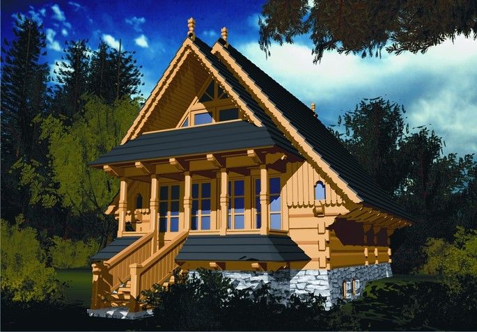 Jaworowy 2 - dom weekendowy, całoroczny dla 4-6-osobowej rodziny w formie nawiązującej do szałasu podhalańskiego. Może być wykorzystany jako mały domek jednorodzinny. Zadaszony taras na parterze i taras na poddaszu.