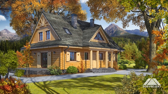 Funkcjonalny dom o ciekawej architekturze. Podstawowym pomieszczeniem parteru jest przestronny salon połączony z aneksem kuchennym. Ponadto na parterze znajdują się pomieszczenia: pokój-biblioteka, pralnia, kotłownia i spiżarka. Kominek w salonie. Na poddaszu cztery wygodne sypialnie i łazienka.