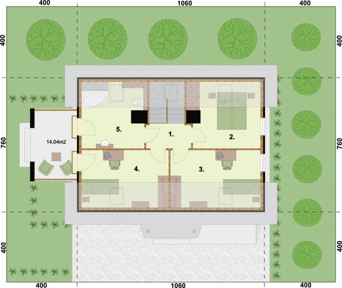 Projekt składa się z części architektonicznej, konstrukcyjnej, wewnętrznych instalacji wod.-kan, c. o. , gaz. i elektrycznej. W projekcie załączone są podstawowe zestawienie stali, drewna i stolarki okienno-drzwiowej. Do projektu dołączamy bezpłatną zgodę na wprowadzenie zmian, oświadczenie projektantów o wykonaniu projektu zgodnie z obowiązującymi normami i przepisami oraz kserokopie uprawnień projektantów wraz z aktualnym wpisem do izby. W przypadku zamówienia projektu w technologii lekkiej, drewnianej konstrukcji szkieletowej, powierzchnia użytkowa budynku jest o około 7% większa.