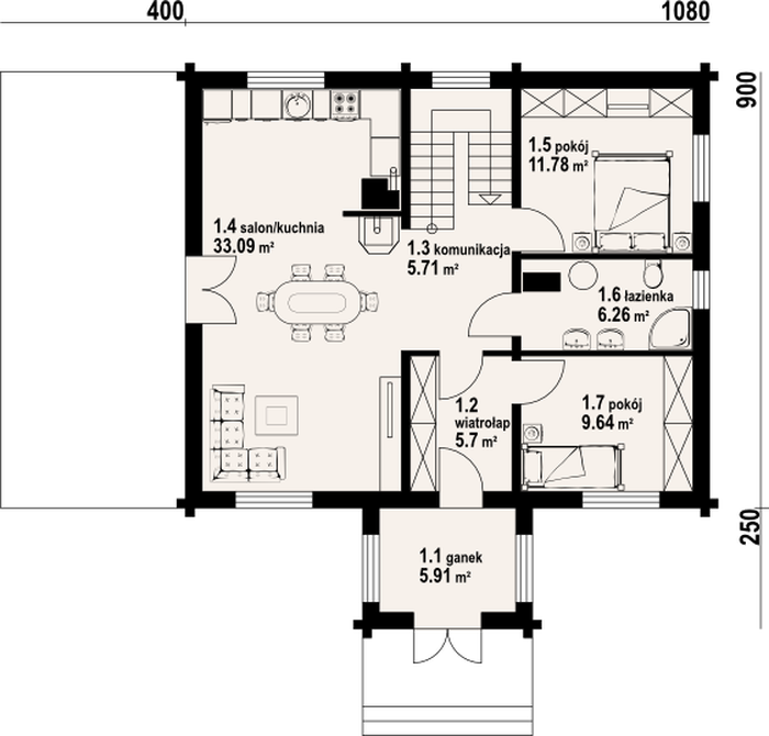 | 1.1 | ganek | 5,91 m2 |