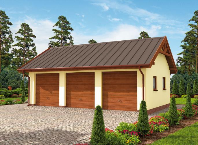 Budynek garażowy trzystanowiskowy, wolnostojący, niepodpiwniczony.