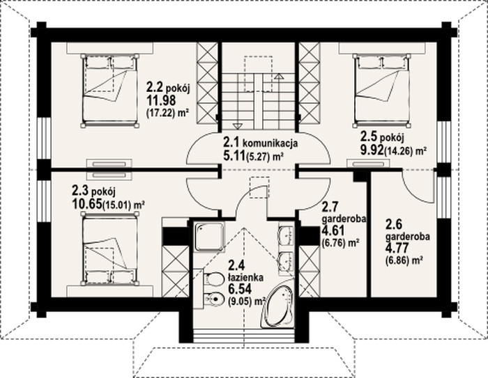 Poddasze: 53,58 m2(74,43 m2)