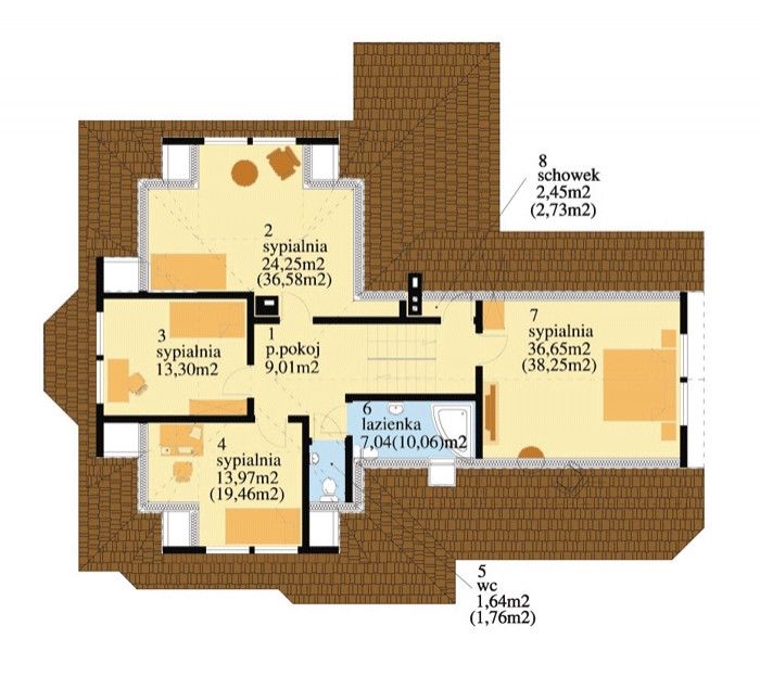 | pow. użytkowa | 218,37m2 | kubatura | b/d | kąt dachu | 45° |